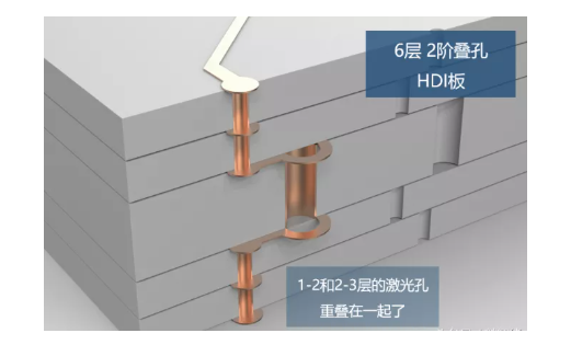 这张图是一个6层2阶错孔HDI板。平时大家用6层2阶的少,大多是8层2阶起。这里更多层数,跟6层是一样的道理。